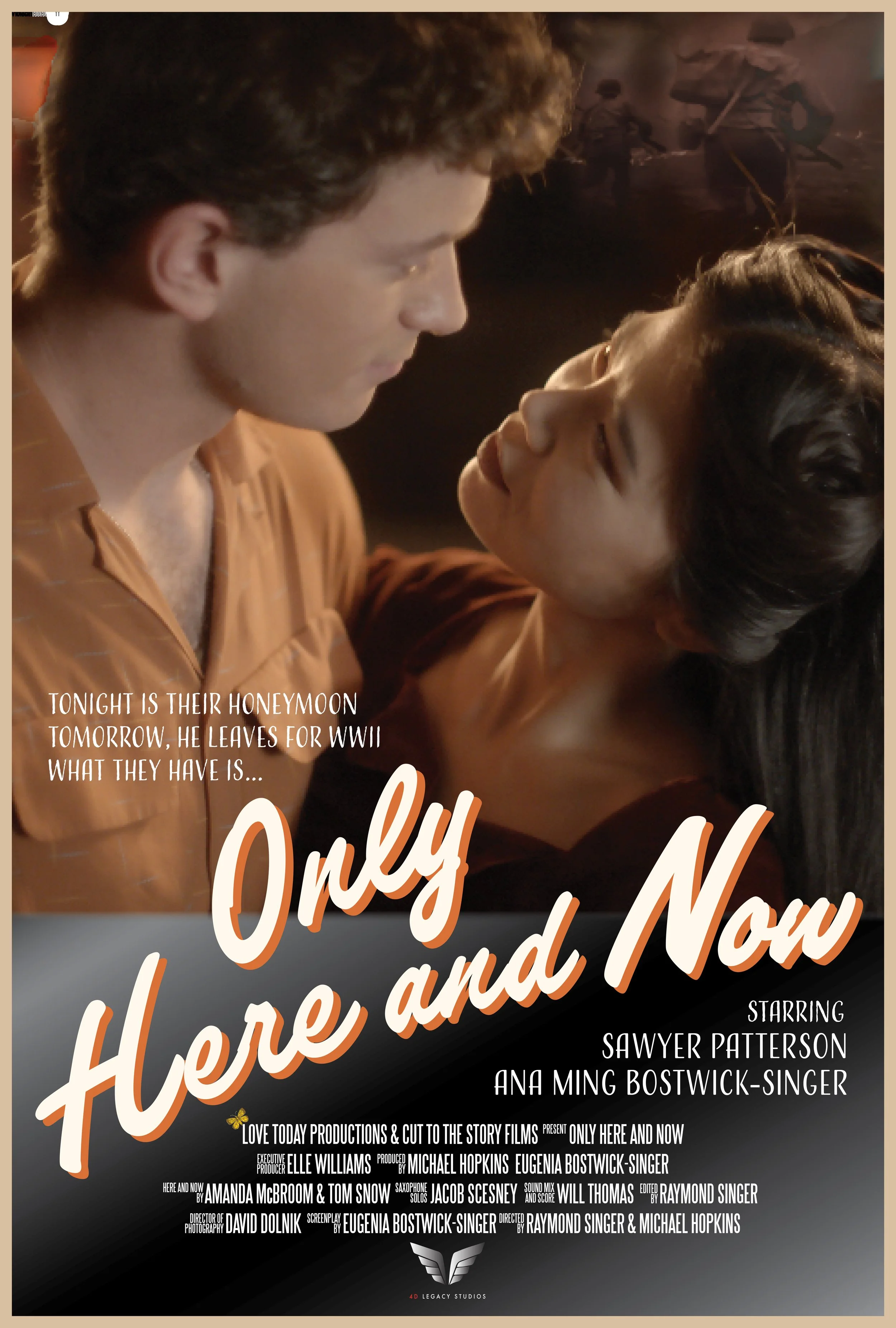 1942 and the world is at war, but high school sweethearts Tom Carlson and Marjorie Hua Carlson are anxious to celebrate their honeymoon night. Tomorrow, Tom leaves to fight the war in France. While waiting for their hotel room, they face the possibility that their first night together could also be their last. This short award-winning festival film has won accolades for the actors, writer, director and cinematographer.